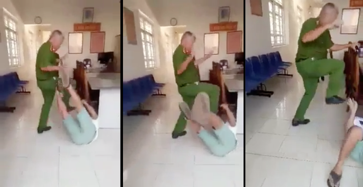 Yesterday evening, January 29, 2019, Facebookers in Vietnam were circulating a video clip showing a gentleman lying on the ground while another, older man in police uniform was stomping on him, hitting him on the face, head and chest area.